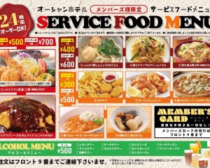 メンバーズ様限定で、24時間いつでもお好きなお食事をお部屋でお楽しみいただけます。