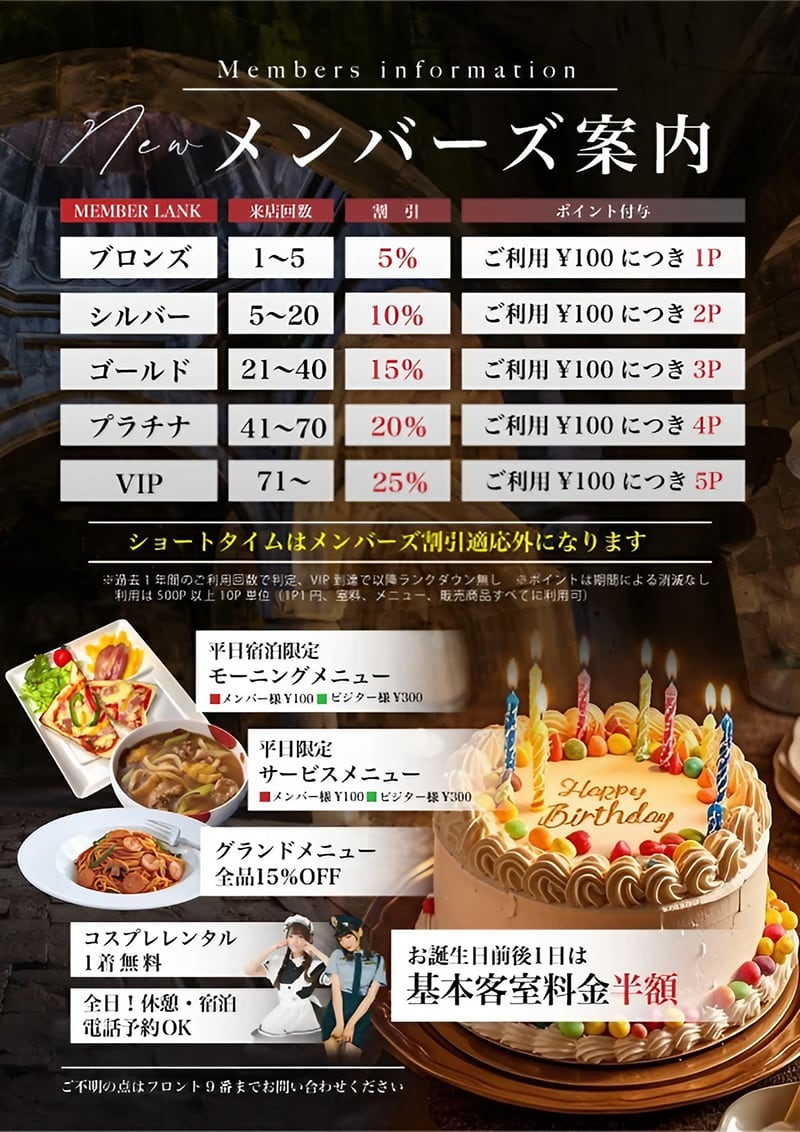 お得な料金設定や無料サービスなど、メンバー特典も多数ご用意させていただいております。
