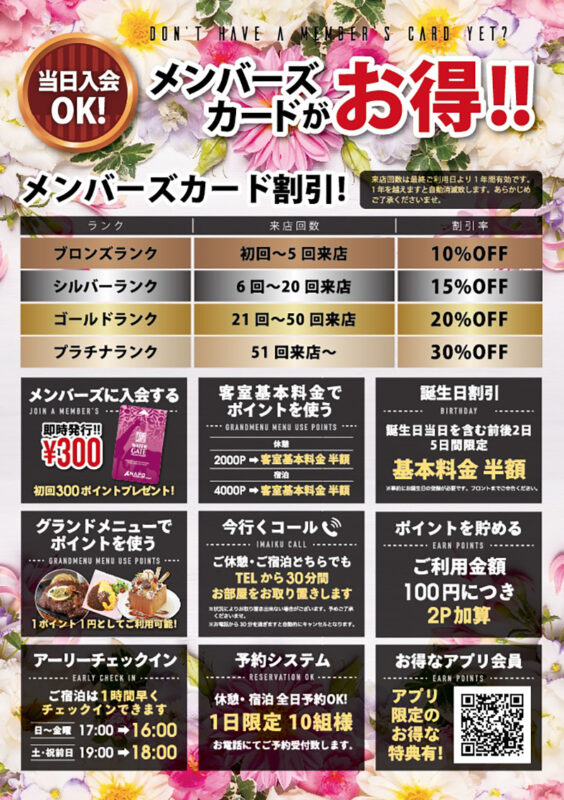 お得な料金設定やポイント引き換えなど、メンバー特典も多数ご用意させていただいております。