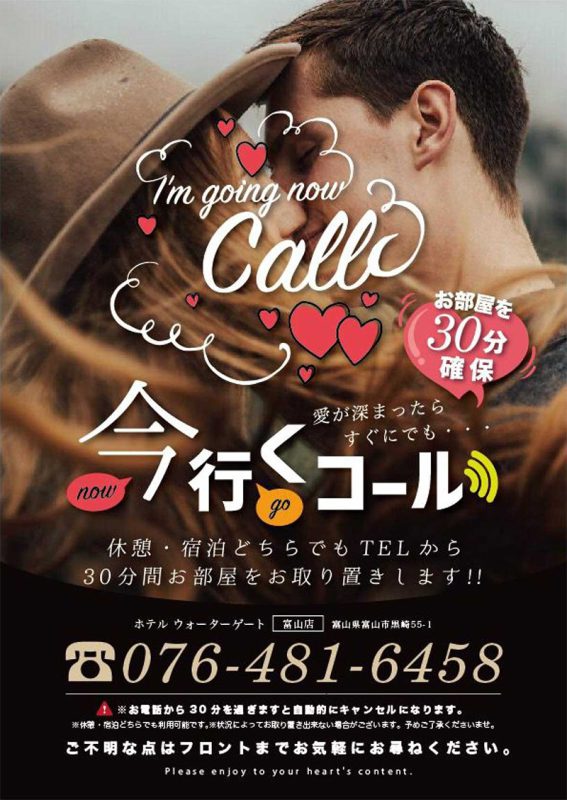 休憩・宿泊どちらでもTELから30分間お部屋をお取り置きします。